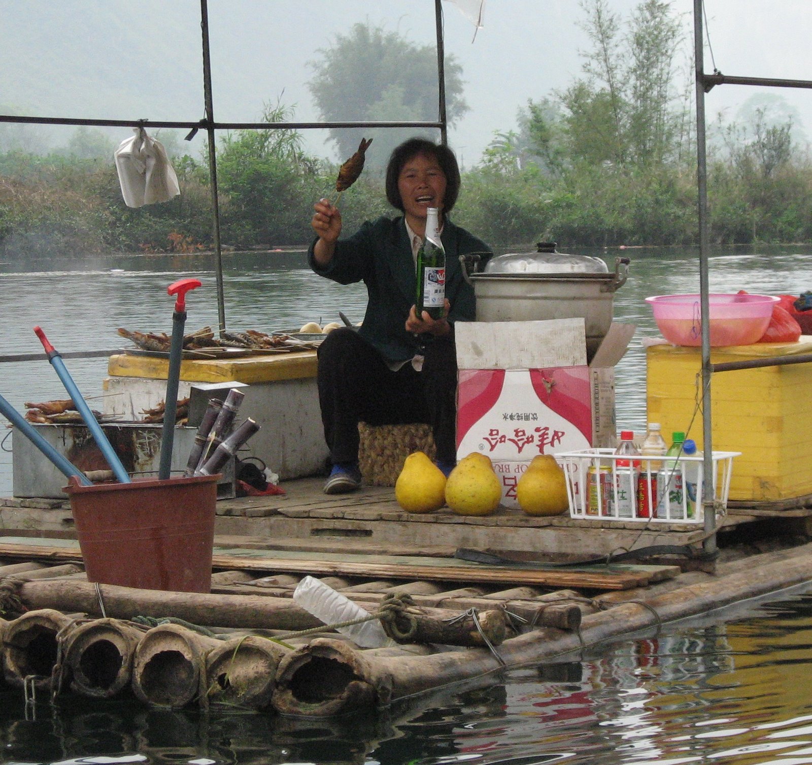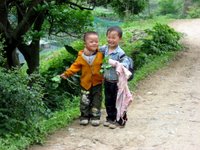 Yes, even in China they have beer bitches that sell things as you float down the Li River - and yes, yes, that is a fried fish on a stick! No, No, that is not what I ate to cause my food poisoning. Scenery shots of Yangshuo, little boys in a local village were so adorable and actually posed for me - I just had to pedal fast to get away from their Grandmother who came running around the corner yelling "money money" for the picture I took. I'm sure one of her few English words. Then of course - can never forget a group shot of the happy couples - before Mao's misery!