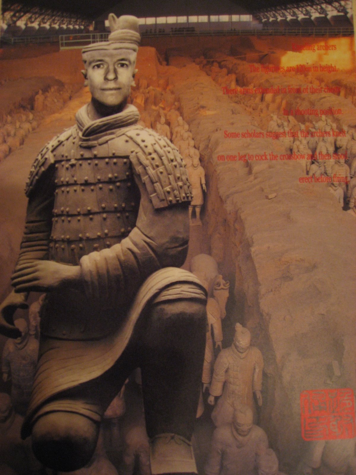 Mythbuster - for the rumor out there that China made up this historical site to make more money from tourism, I do have to say - I don't think so. This "tourist trap" was HUGE and I don't think they (the Chinese Government) could have come up with something this amazing. However, of course Will and I had to participate and buy the kitchy-est souvenir there - having Will's face digitally placed on a warrior body. I really wanted to have them print it to a cheap plate, but that wasn't an option - so we settled for an 8x10 photo for $12 instead.