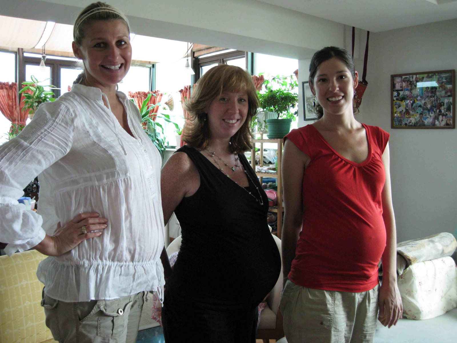 The picture of me is at 34 weeks, Melissa (in red) is two weeks behind me at 32 weeks and Gina (in white) is 30 weeks - hello... my belly still looks rather disproportionate but .... then again, according to the ultrasound I had done this morning - Finn weighs about 5.7 lbs right now! Say what?? Dr Kong said she hopes I don't go past my due date because right now she says its looking like an 8lb-er... Where does this kid come from? Have you seen his parents?