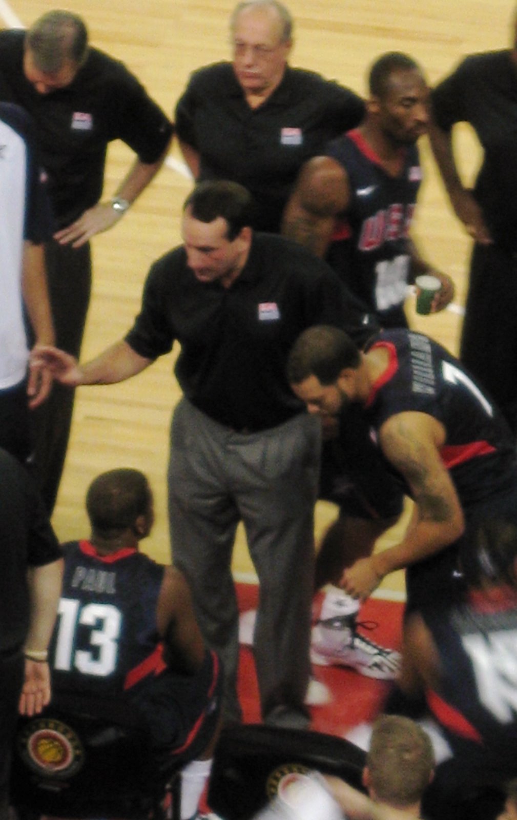 Couple pictures: Coach K (of course) and then a "minor altercation" after a foul call - so got Kobe and LeBron in the shot. Sorry that they are a bit blurry - still trying to figure out how to do action shots and zoom with focus on the new camera.