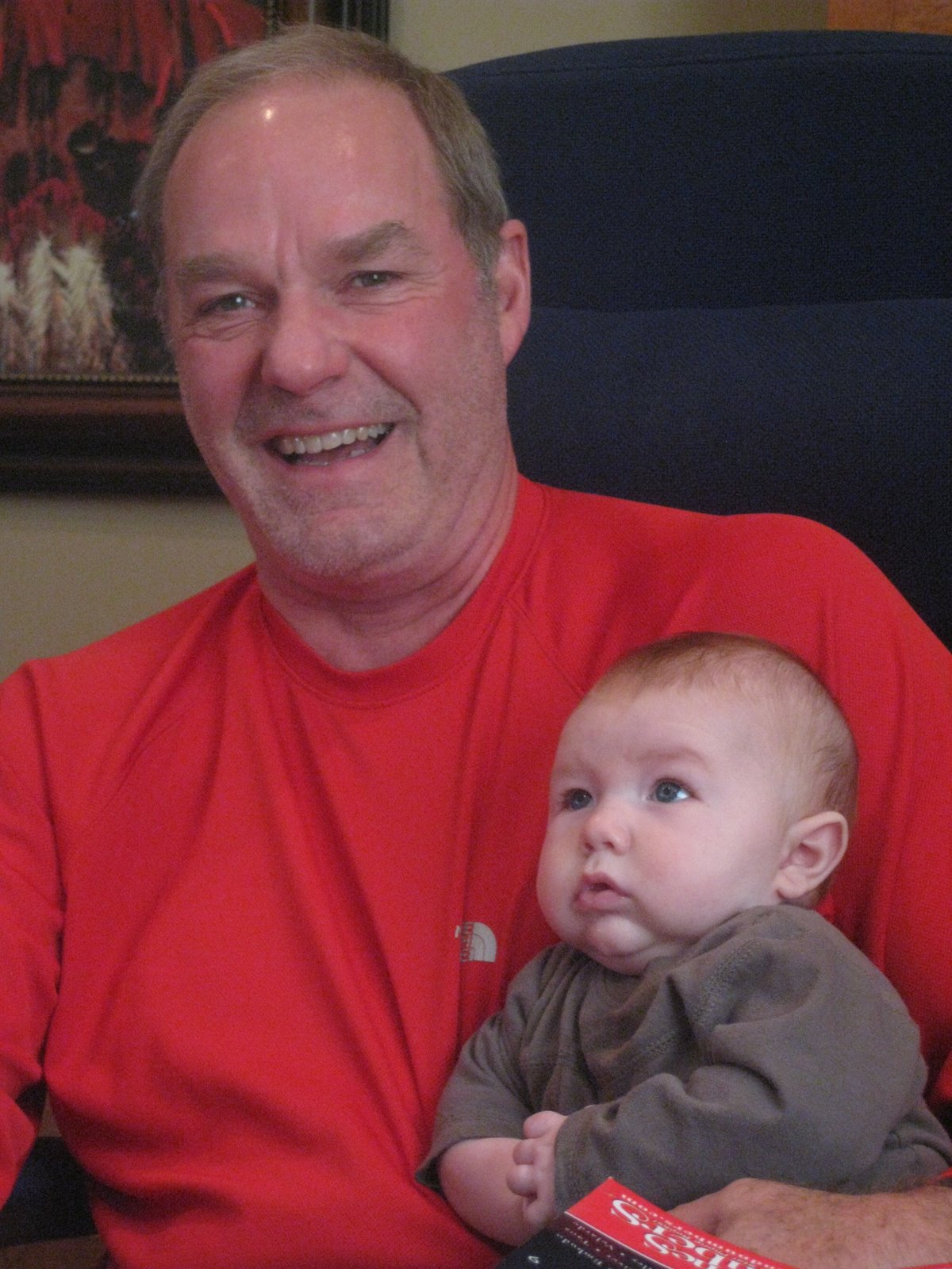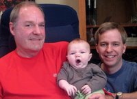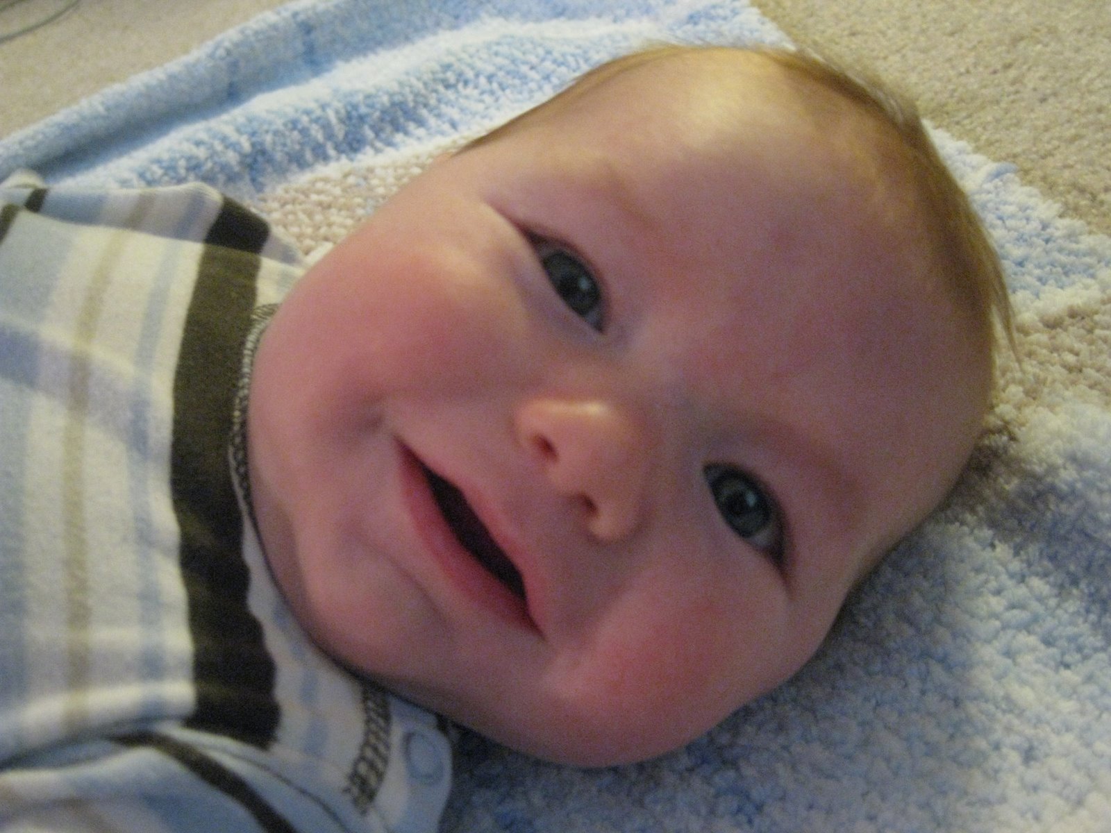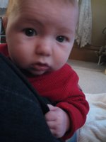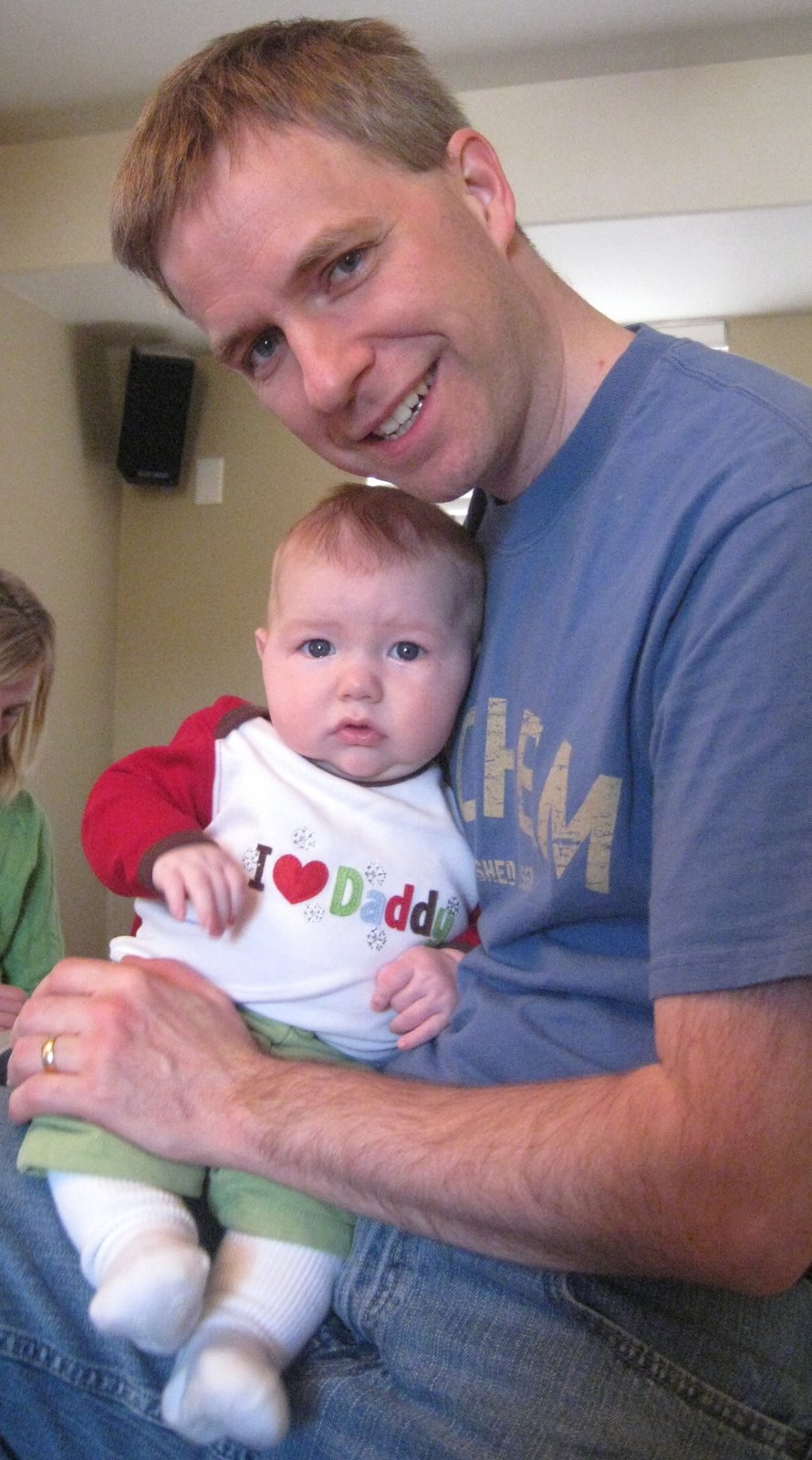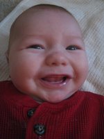 Ah...Daddy's back! Oh did I miss him and he missed me. He has been holding me and smiling with me the last few days! What a cool Dad he is and of course he still thinks I'm cute and B-I-G! He and mom are going to have to figure out how they are going to hold me for any length of time without having back and arm pain....but at least their biceps will look good!
