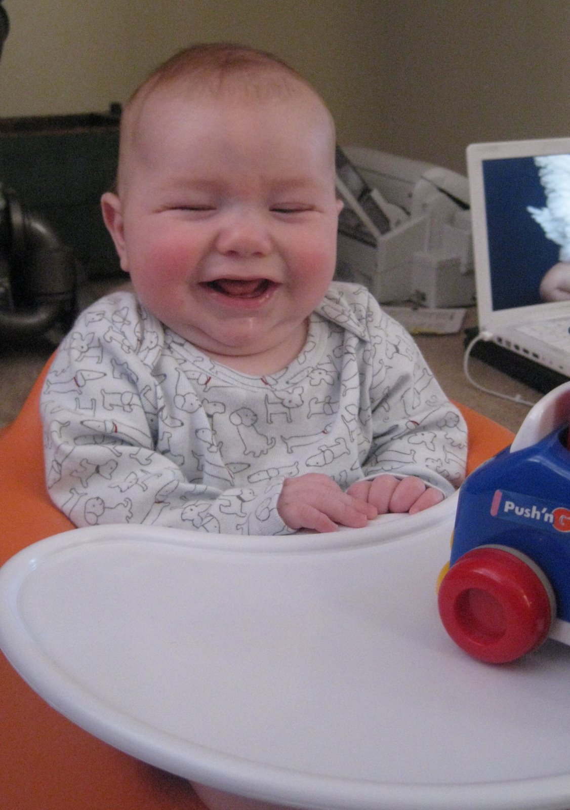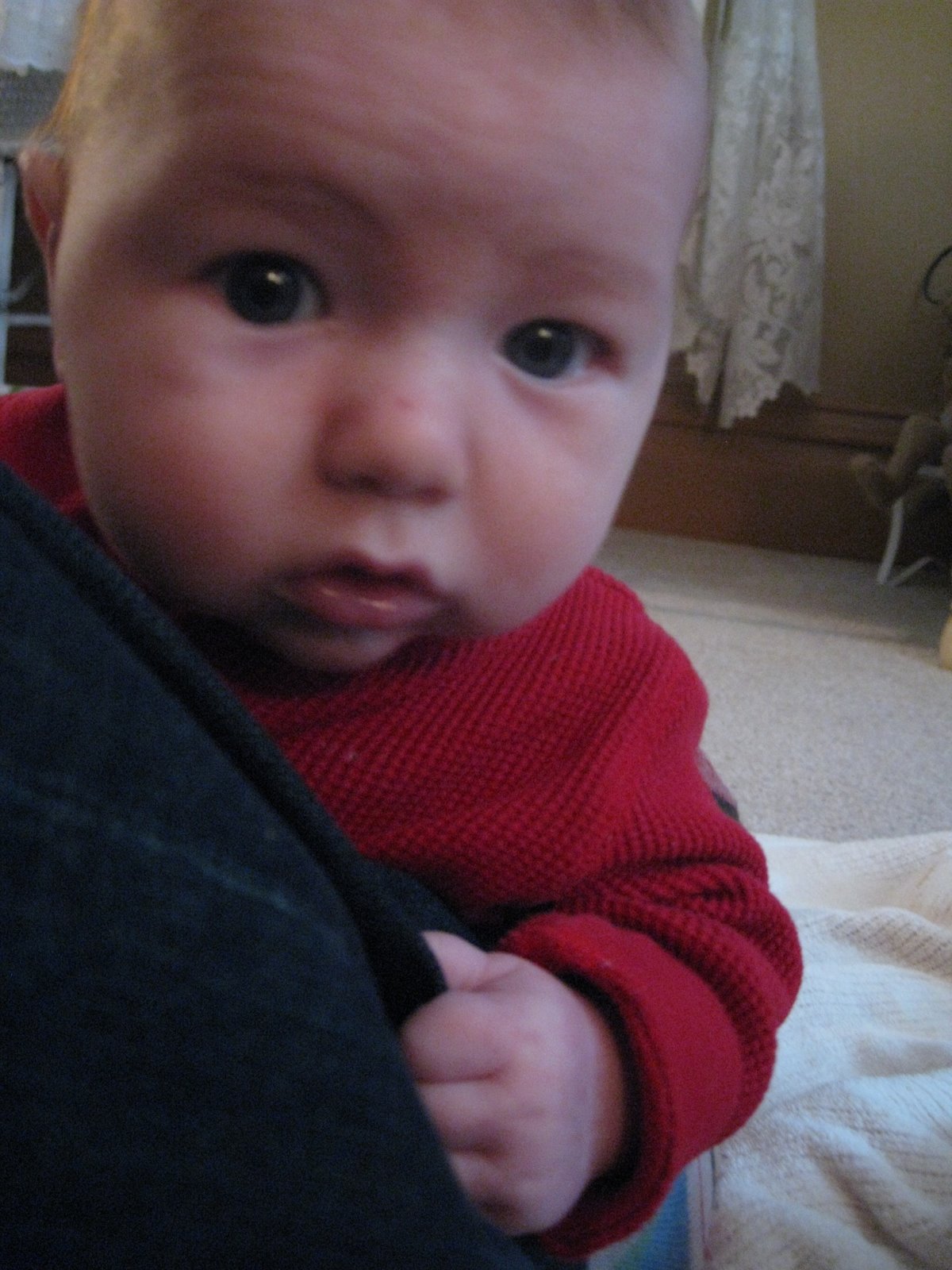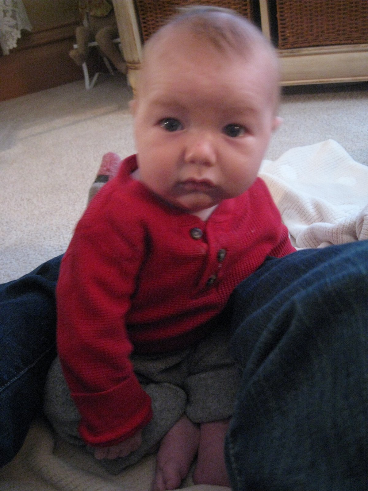 The weather outside is frightful, and there is no fire and no place to go - we decided to practice sitting up. Thank goodness Grandma is around otherwise mama would just expect me to just magically sit up by 6 months of age... duh. So with one foot of snow and more each day, and despite an occasional?! outburst that mom is making me work too hard, we are enjoying our "inside time" for now. We miss you Daddy!