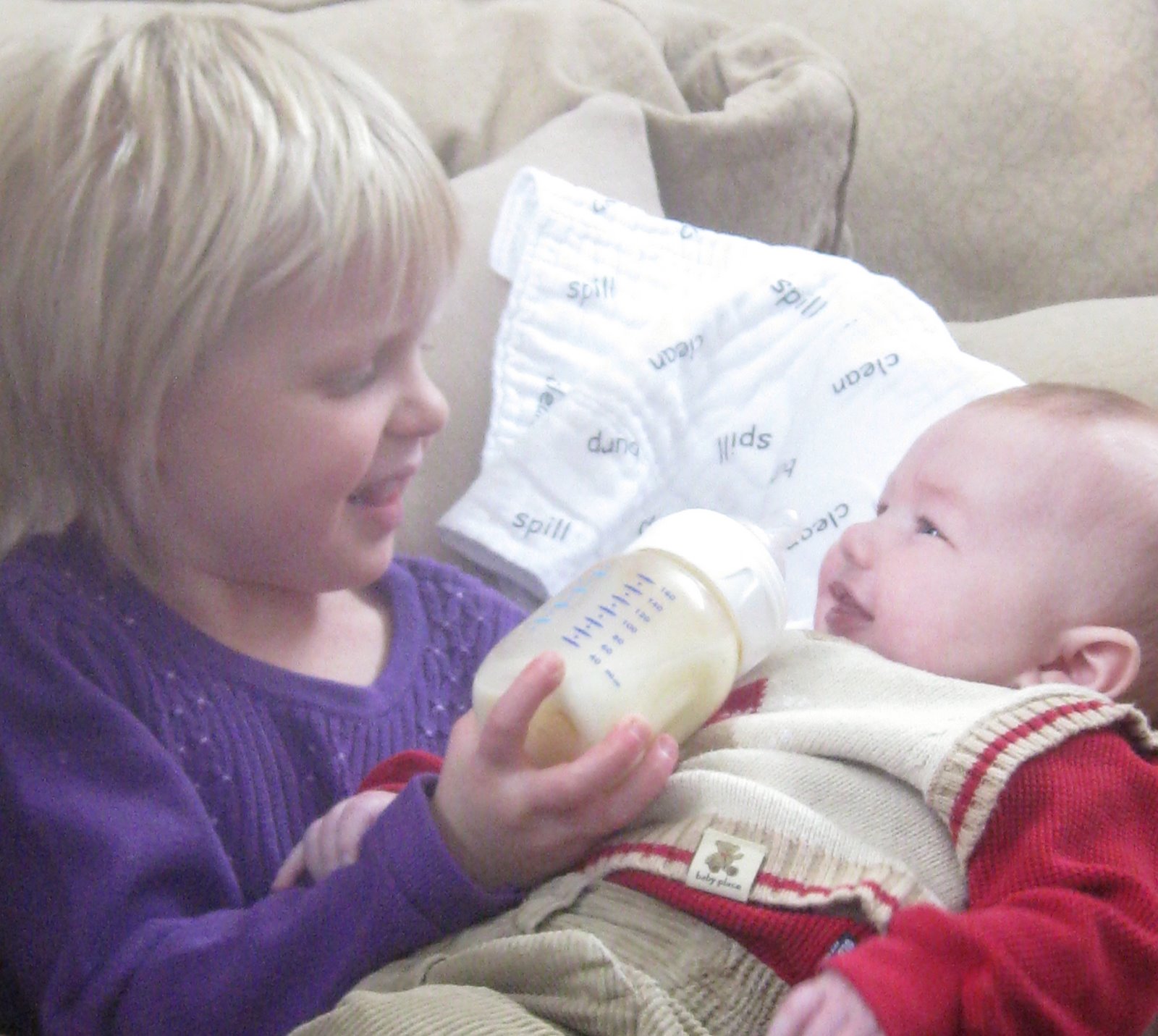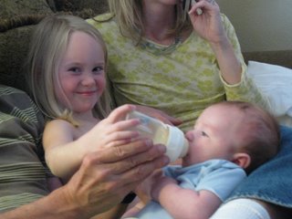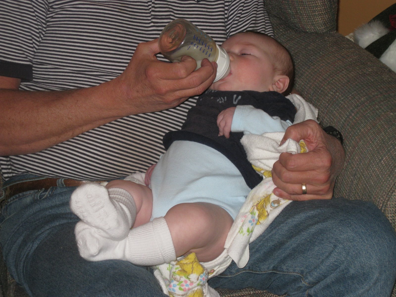 The other picture was from the night before - it was Grandpa's turn to give me a bottle and I thought I'd just kick back and put my feet up and be a full participant in my favorite sport - eating!
