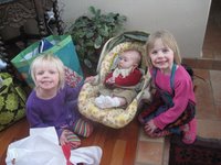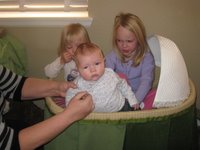 The count down is on for Daddy to fly in to see me! I haven't seen him in 1 month...he is going to be so surprised at how big I am. In the meantime, I'm enjoying more time with my Baillie cousins. Uncle Brian's mom let me borrow a bed for me to sleep in and so I'm being very good about sharing since the ladies all like to take turns in it as well - although Grandma and mom have to watch close since sometimes they want to kick me out altogether and have it all to themselves. Well only a few more days until I get to meet Daddy Ray and CC in Taos, NM and then it is on to Flagstaff, AZ where I'll get to meet Uncle Kip, Aunt Beth, cousins Meg and Eliza, Aunt Katy, Aunt Clover and Aunt Missy - but most of all... we can't wait to give MaMA a big hug and a kiss. I bet they will be a lot of fun too!