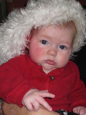 Here are a few pictures so Daddy can see how much I'm growing and how much I'm smiling lately. I finally got to meet my dog brothers and I think they are a little jealous, but are coming around. Hanna did a great job of feeding me as did the other cousins! We had a great Thanksgiving as well at Aunt Sandy's and mama got a well deserved break and did not get a chance to hold me much - Grandpa thinks my hat is a little goofy, but all the ladies thought I was adorable! Uncle Roger was trying to find some guy time while mom was shopping to introduce me to the cult classic "Beastmaster" - but mom was thankful he was not able to locate a copy. I'm sure looking forward to a double feature of Beastmaster and Clash of the Titans some day with him. I was so tired after all the attention this past weekend, I made it home and have been crashing with mama on the couch for naps!